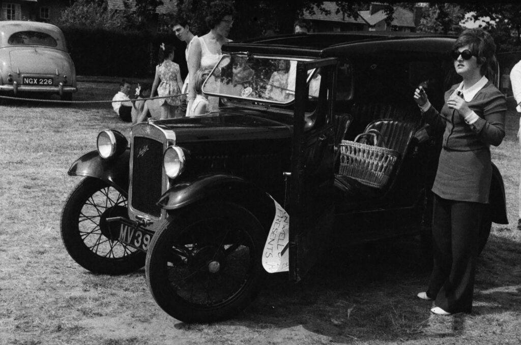 “I was a junior member of Hanwell camera club back in 1969-70, when after my family moved to Suffolk. Recently I found a number of un-developed films in my loft. Choosing one at random I had it developed, I sold my developing kit years ago. On getting it back they are photos of Hanwell carnival, probably 1969 and in particular an Austin 7 with a Hanwell Camera Club banner on it. I remember the day, a member with the car was in the parade and I walked alongside with a bucket.”